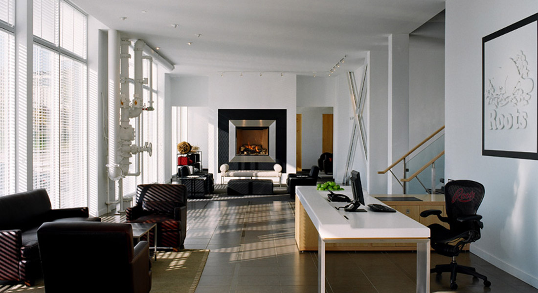 Roots is unique in its culture and the company’s new world headquarters reflects that distinction.  Recently, co-founders Don Green and Michael Budman decided to consolidate the Toronto headquarters in one facility and approached Bullock Associates Consultants, Inc. to create an environment as innovative as Roots’ products and people.